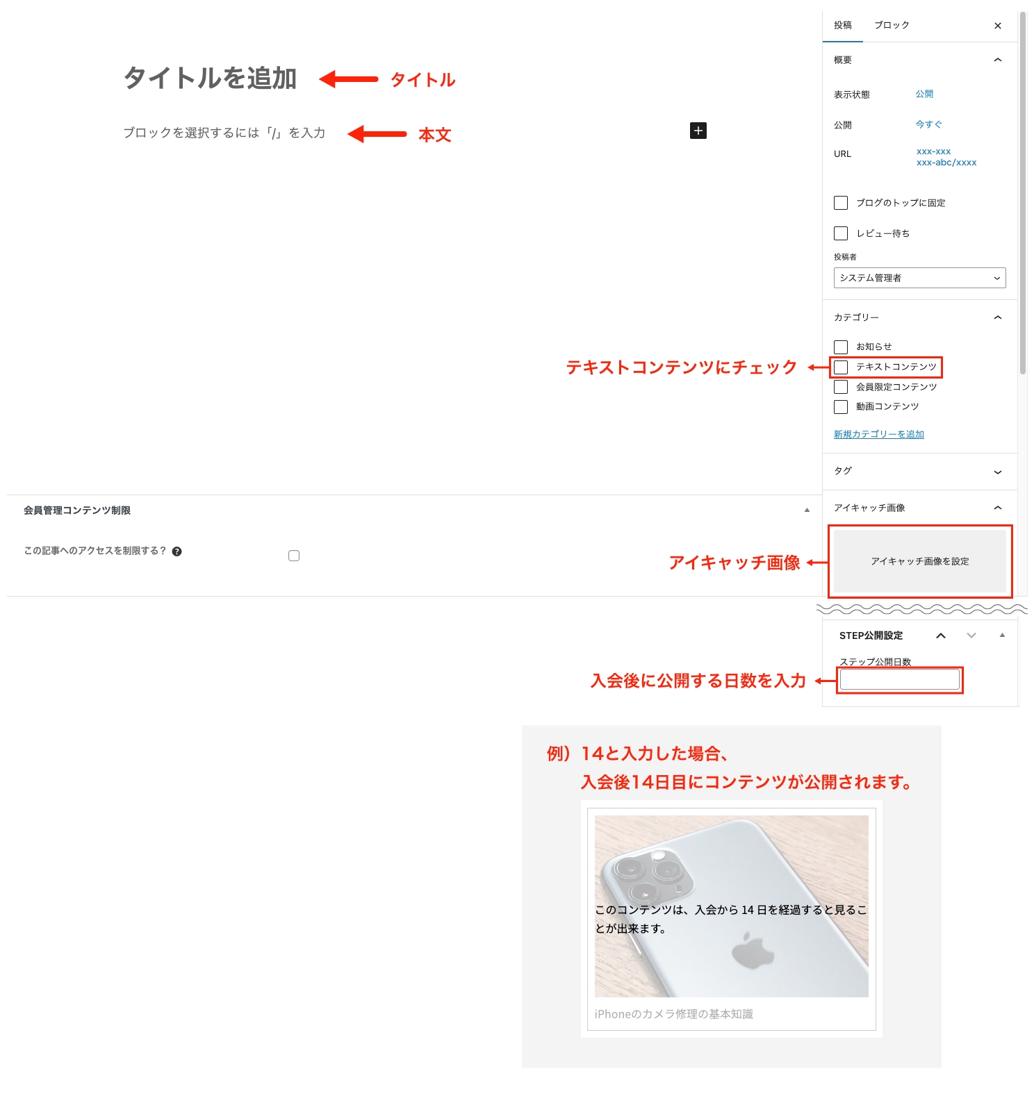 コンテンツを会員個別に段階的に公開するステップ公開機能が搭載されています。コンテンツを段階的に分け、各ステップにどのようなコンテンツを表示するか設定できます。