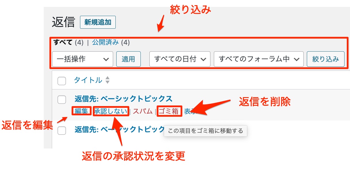 返信(コメント)の編集と削除
